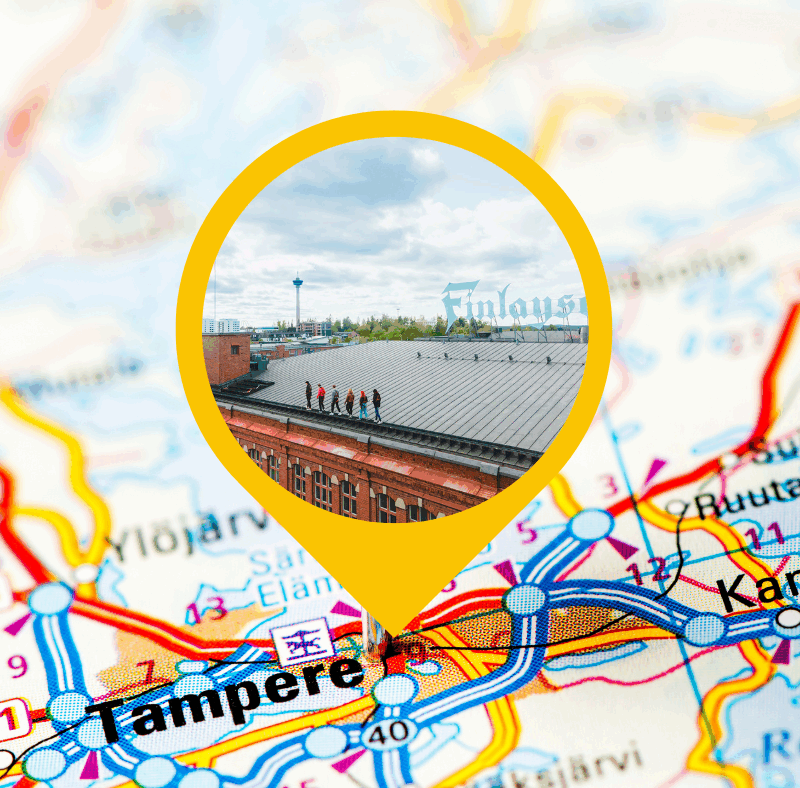 Roof Walk Finlayson Area on opastettu kävelyreitti Finlaysonin vanhan tehdasalueen katoilla, ja pääset kokemaan maisemia sekä tarinoita Tampereen kattojen yllä!
